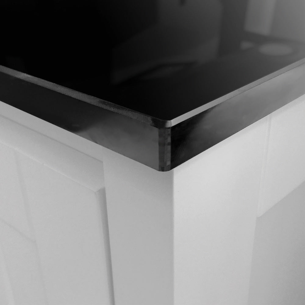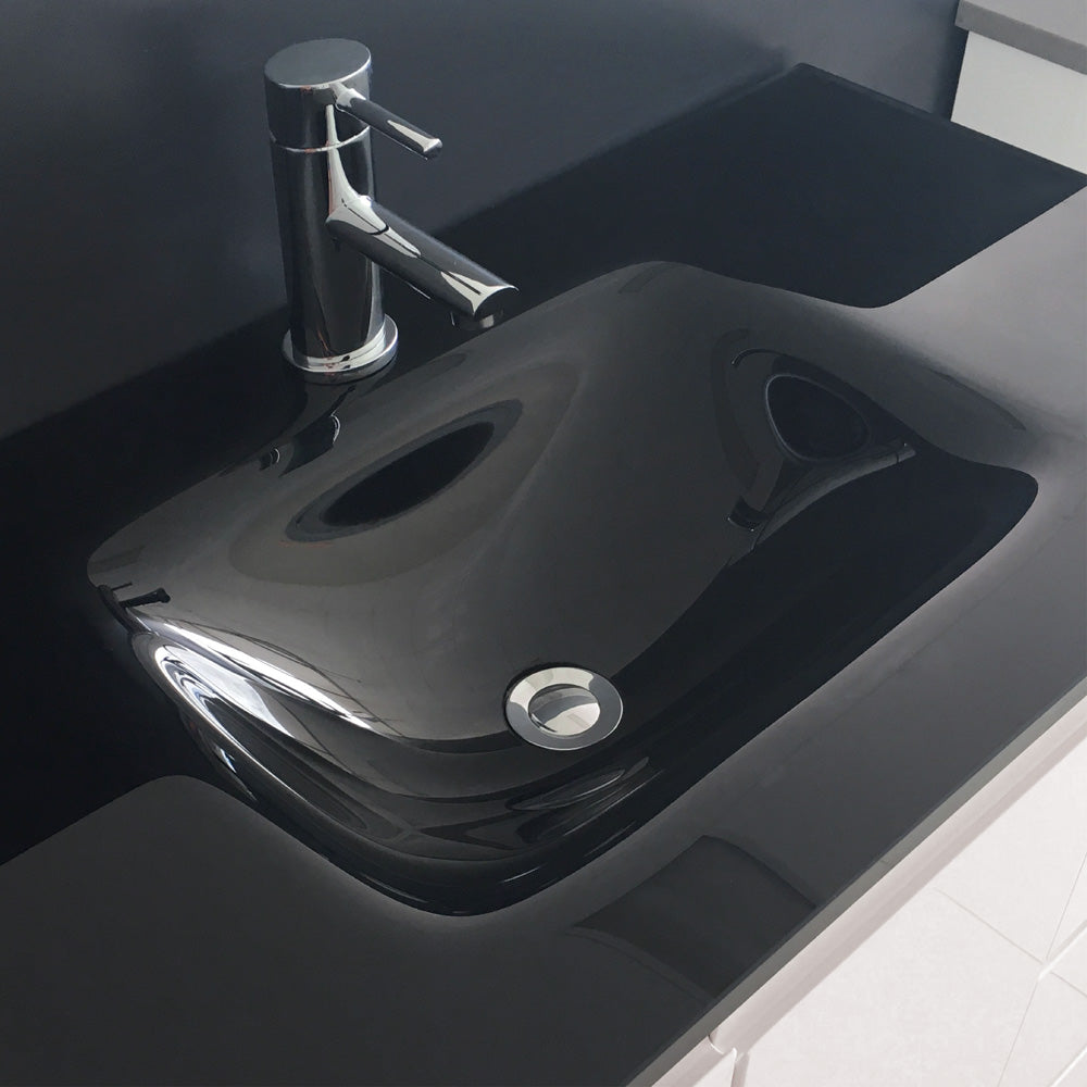 Super smooth solid glass surface with an irresistable, softly curving basin.