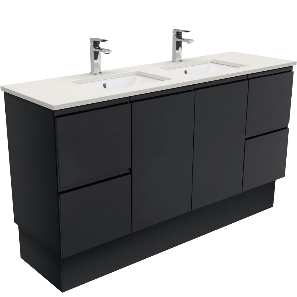 Beautiful pale sand reconstituted stone top with 1mm glass fleck. Also available without a cutout for use with above counter basins (see our Stone & Timber Tops range).